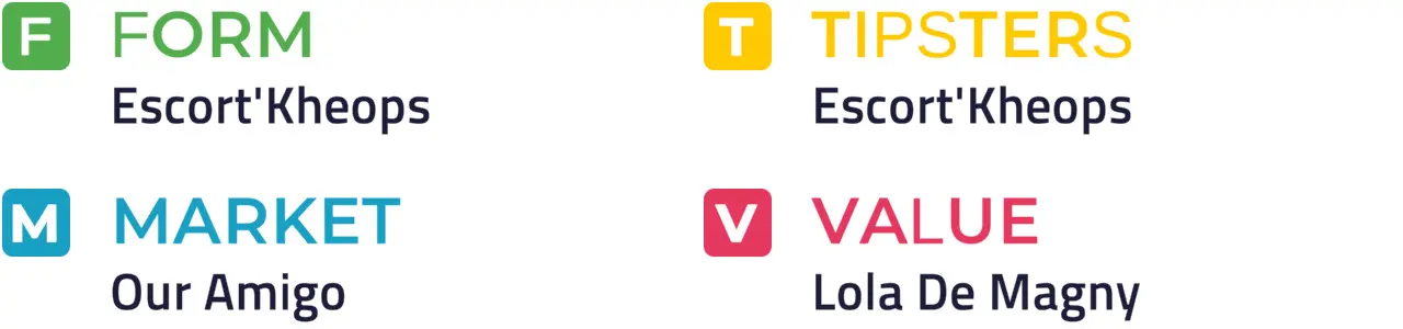 Specific Pace Hint: This could develop into a sprint for home, and Escort'kheops could be well placed to capitalise: Of the better-fancied horses, Idaho Fire is most likely to be ridden furthest from the pace.