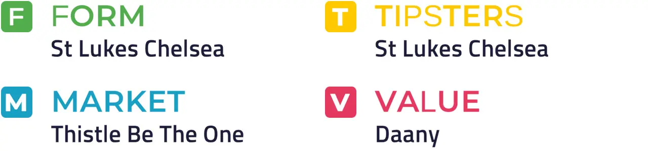 ST LUKES CHELSEA went close when third over C&D 15 days ago and he can build on that effort to gain a breakthrough success. He gets the vote ahead of Thistle Be The One, who was runner-up twice here last season, while Raging Al could still have more to offer in this sphere.