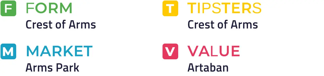 Specific Pace Hint: Arms Park could be advantaged by a prominent position which looks likely in this field: Of the better-fancied horses, Artaban is most likely to be ridden furthest from the pace.