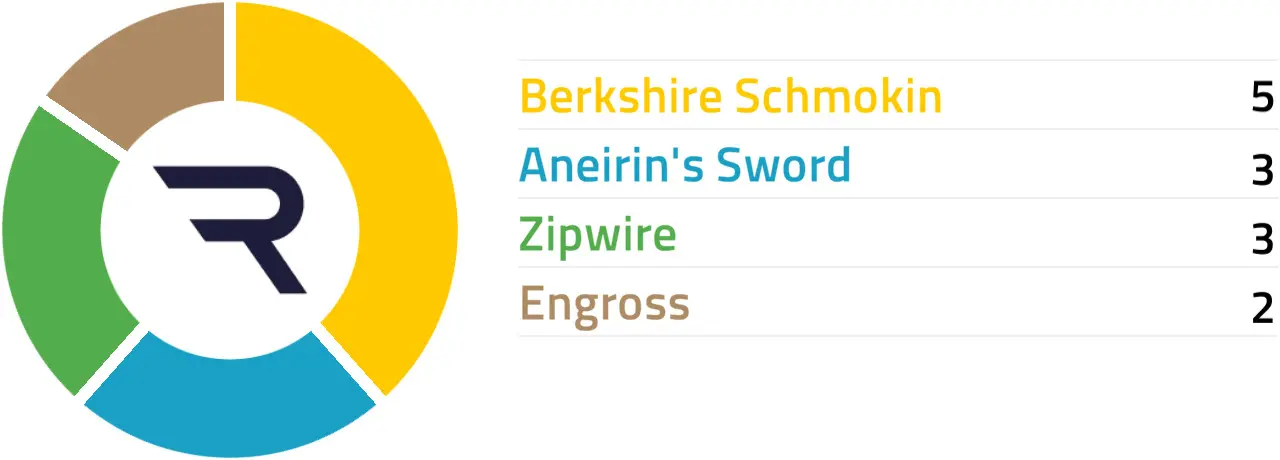 Specific Pace Hint: Pantile's Gift could be expected to race prominently. Of those in the front half of the betting forecast, Berkshire Schmokin might be well positioned in a slowly run affair: Of the better-fancied horses, Zipwire is most likely to be ridden furthest from the pace.