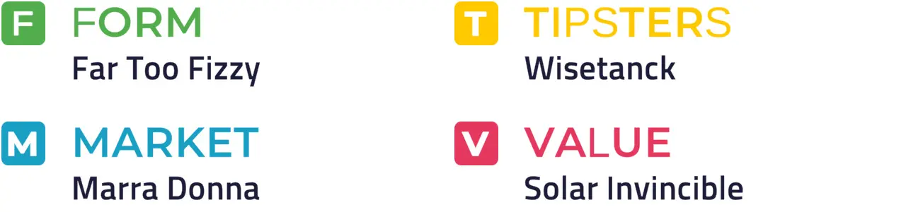 Specific Pace Hint: In a race that lacks confirmed pace-forcers, Far Too Fizzy could get the run of things: Of the better-fancied horses, Wisetanck is most likely to be ridden furthest from the pace.