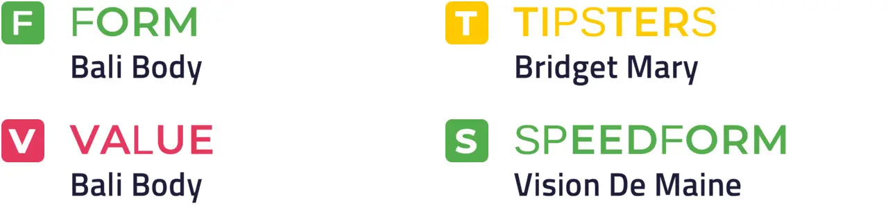Specific Pace Hint: Flemenstide could be expected to race prominently. Of those in the front half of the betting forecast, Mythe Bridge might be well positioned in a slowly run affair: Of the better-fancied horses, Bridget Mary is most likely to be ridden furthest from the pace.