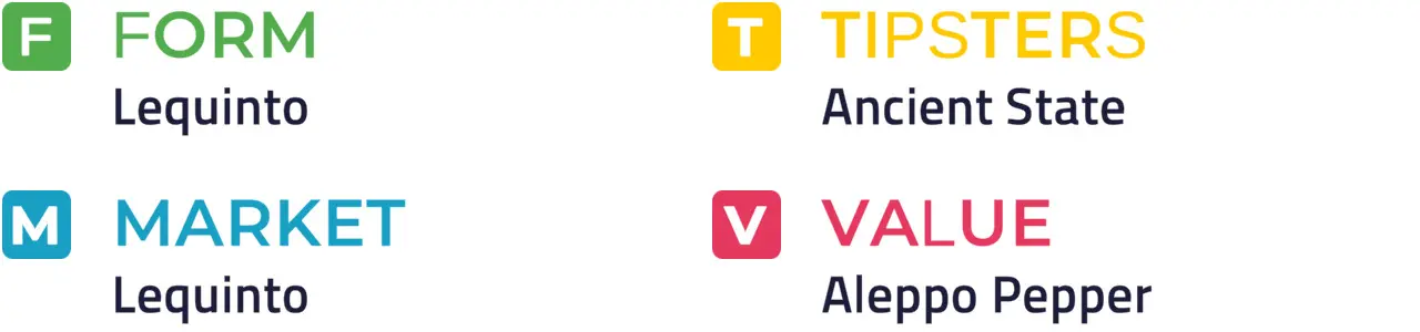 ANCIENT STATE settled better than previously when running out a convincing winner on first start for Adam Kirby at Southwell last month and a 6 lb higher mark doesn't look enough to prevent the following up given he remains unexposed at the minimum trip. Lequinto arrives on the back of solid placed efforts and is feared most ahead of prolific course winner Mick's Spirit.