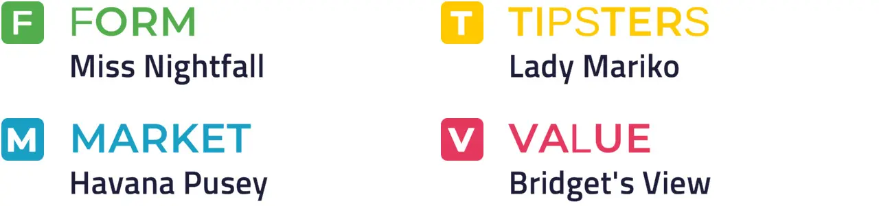 Specific Pace Hint: This could develop into a sprint for home, and Shallow could be well placed to capitalise: Of the better-fancied horses, Miss Nightfall is most likely to be ridden furthest from the pace.