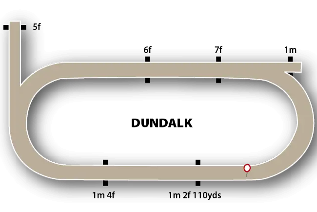 The Dundalk polytrack course, which opened in August, 2007, is a left-handed, oval course, about 10 furlongs in extent, with a run-in of about 2½ furlongs. A 5f chute joins the main course on the home bend just over 3½ furlongs from the finish, while the 1m start is in a short chute at the start of the back straight.