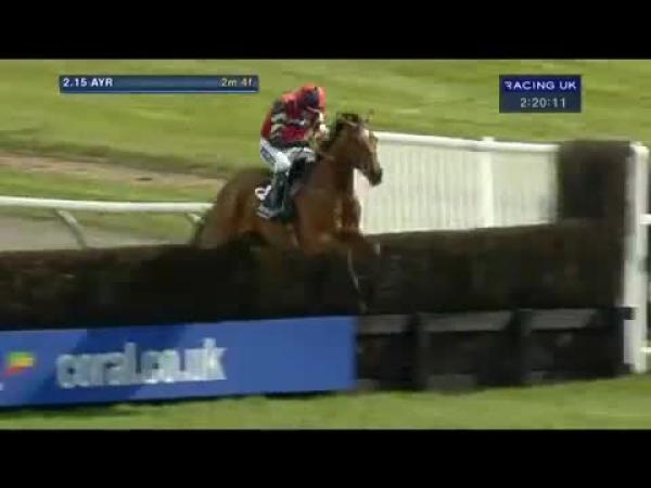 Held up, pulled hard, bumped 1st, mistakes 4th and 8th, closing when hit 9th, went 2nd 4 out, led before 2 out, clear approaching last, eased flat