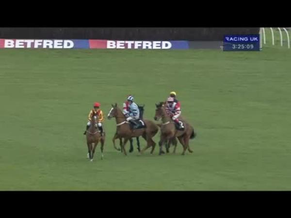 Took keen hold, led, mistake 3rd, raced very wide on back straight, headed after 4 out, 4th and beaten when veered left on landing and unseated rider 3 out
