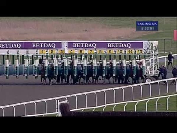 Dwelt, soon recovered to track leader after 1f behind slow pace, led 2f out, ridden and strongly pressed 1f out, stayed on under pressure to assert final 150 yards