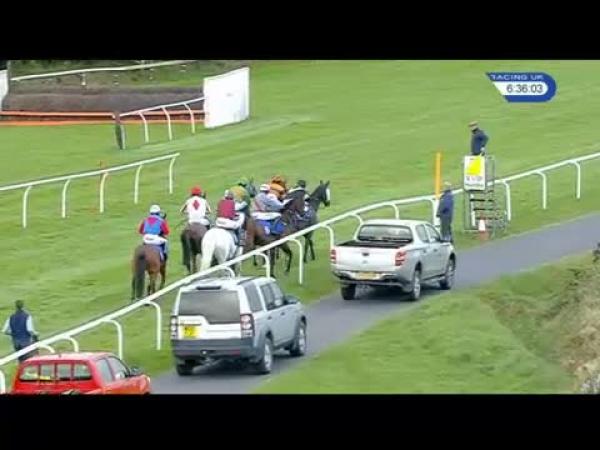 Tracked leaders when faulted and unseated rider on bend after 1st