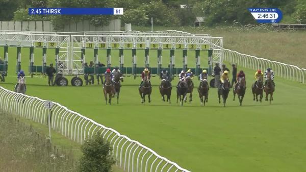 Raced alone towards stands side, towards rear, headway over 2f out, soon ridden, edged left and ran on well inside final furlong, led narrowly towards finish
