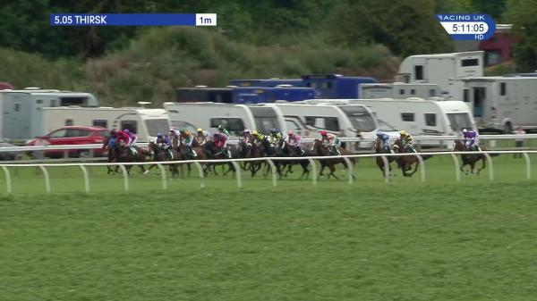 Held up behind, checked after 1f, driven and headway on outer over 2f out, ridden over 1f out, ran on inside final furlong, led inside final 100 yards, driven out