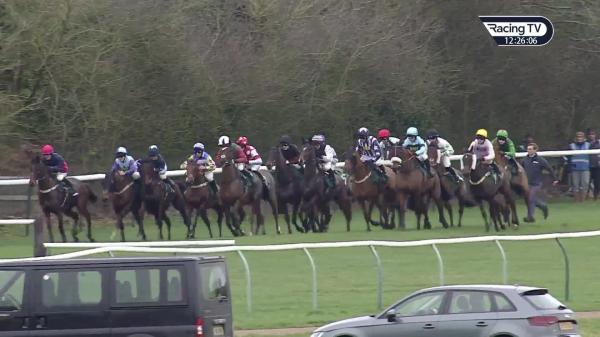 In touch on inside, lost place and pushed along after 4th, headway under pressure on outside next, challenged 3 out, led narrowly next, soon ridden, held on on gamely in driving finish flat, all out