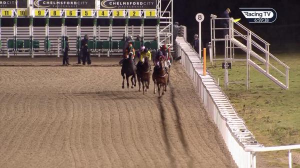 Steadied start and awkwardly away, pulled hard early, went 3rd over 6f out, good headway on outside over 1f out, ran on to lead inside final 150 yards, eased towards finish