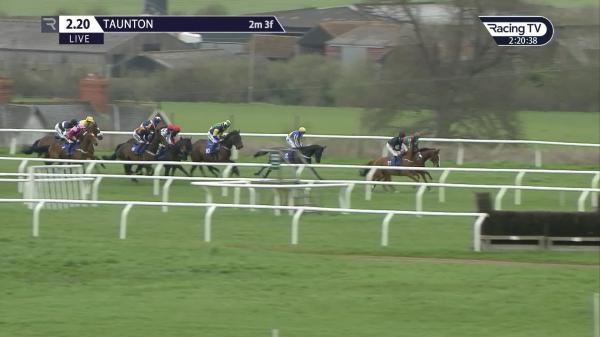 Keen in mid-division, headway on outside chasing leaders 3rd, slightly hampered 3 out, challenged last, squeezed through gap on outside and stayed on to lead towards finish