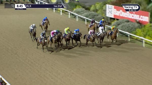 Slowly into stride and towards rear, reminder early, headway on outer after 3f and 4th halfway, pushed along and progress to lead 2f out, ridden to assert over 1f out, under pressure and kept on well inside final furlong