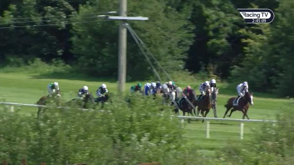 Soon mid-division, headway and effort straight, challenged and slightly impeded by loose horse inside final furlong, kept on without matching principals