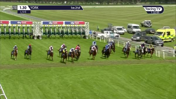 Awkwardly away and lost ground start, held up and behind, travelling well when not clear run and switched right inside final 2f, good headway near side of group over 1f out, strong run inside final furlong, led towards finish, bit in hand