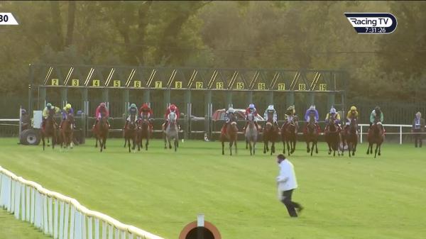 Waited with in near side group, still travelling smoothly over 2f out and headway, soon pushed along, kept on without reaching winner inside final furlong