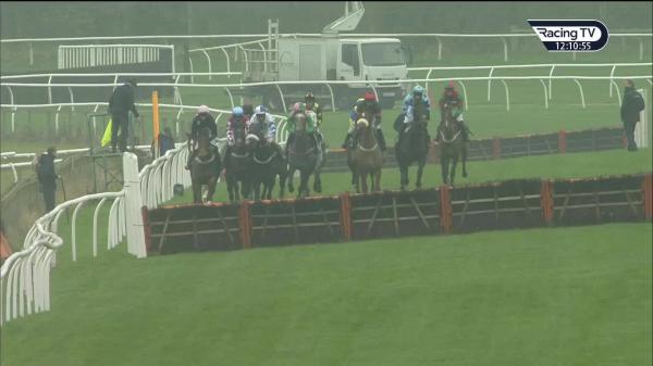 Held up in midfield, headway to chase leaders 3 out, close up 2 out, upsides last, 1 length down on landing, stayed on strongly under pressure to lead final strides