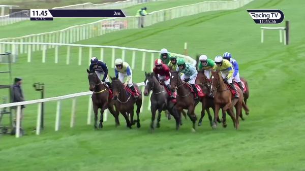 Rear, not fluent at 1st, saddle slipped and rider lost iron in mid-division before 3rd where slight mistake, rider regained iron after 3rd, 5th after 4th, unseated rider 4 out