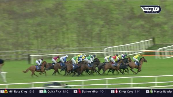 Towards rear, not fluent at 2nd, progress after 3rd, 7th after 4th, closed after 3 out, strongly challenged leader 2 out, led narrowly at last, kept on best under pressure