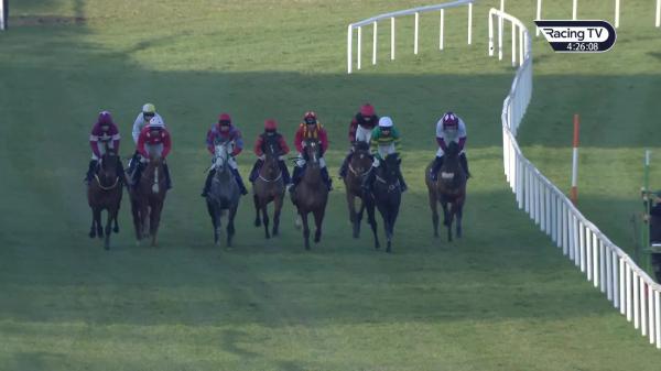 Disputed, jumped right 1st, soon led, jumped slightly right 6th and pressed briefly, asserted before last, jumped slightly right last, pushed out briefly run-in, comfortably
