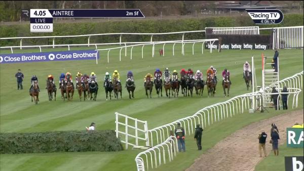 Prominent, led before 3rd, headed next, led 12th (canal turn), headed 4 out, switched right before 2 out, close up when edged left before elbow, squeezed round inside on elbow and soon led, stayed on, ridden out
