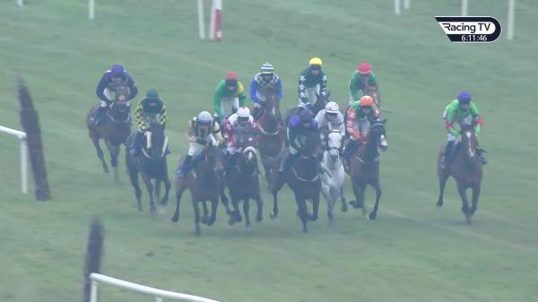 Settled behind leaders early, 5th halfway, improved to challenge before 2 out, disputed and slight mistake 2 out, soon ridden, narrow lead last, kept on well run-in
