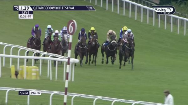 Held up well off the pace in rear, pushed along halfway, closer hung right and ridden inside final 2f, chased leaders over 1f out, stayed on inside final furlong, never going pace to reach leaders