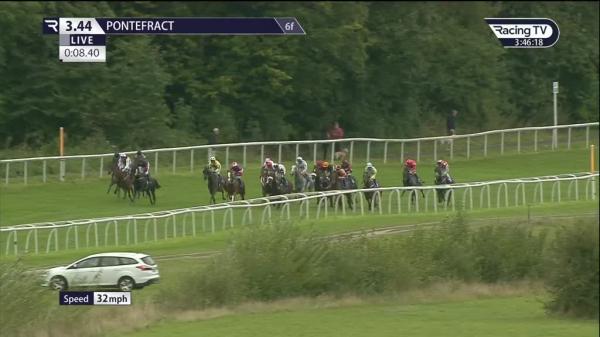 Raced out wide throughout, chased leader in pair, well on terms and came hard on near side rail in home straight, went 2nd inside final 2f, ridden to lead inside final furlong, ran on well