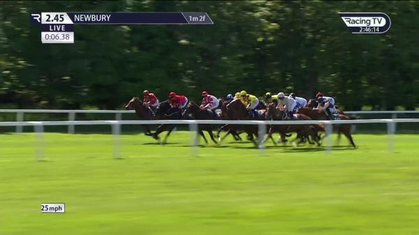 Slowly into stride, held up in rear, bit closer and forced to race wide halfway, steady headway on outside 2f out, chased leaders over 1f out, stayed on gamely inside final furlong, led final 100 yards