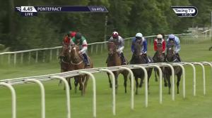Soon tracked leaders, pushed along well over 2f out, headway to lead over 1f out, soon swerved left and bumped rival, faced strong challenge inside last, driven out and stayed on grimly