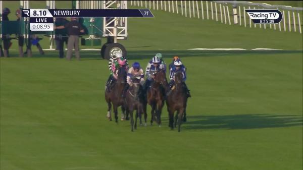 Steadied start, waited with in rear, headway far side of group 2f out, went 2nd over 1f out, ridden to lead and quickened clear inside final furlong, ran on strongly