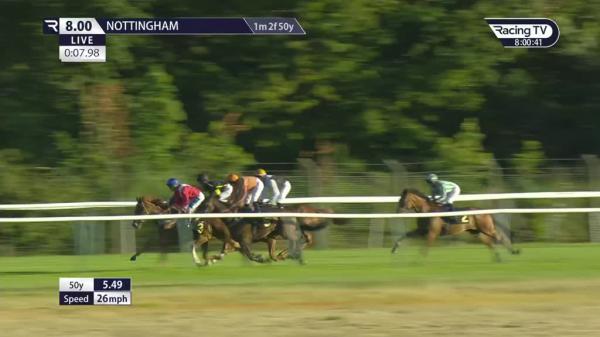 Slowly into stride, held up in 5th, hung left from 2f out, good headway out wide over 1f out, strong run inside final furlong, finished well, just held