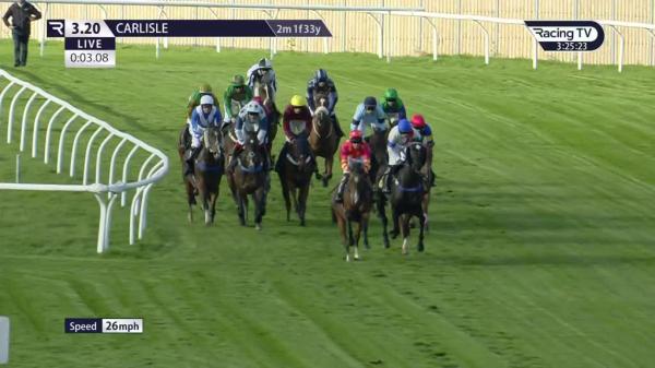 Waited with in rear, gained a place 4 out, bit closer and switched right 3 out, headway chasing leaders next, strong run on inside after the last, ridden to lead run-in, battled on