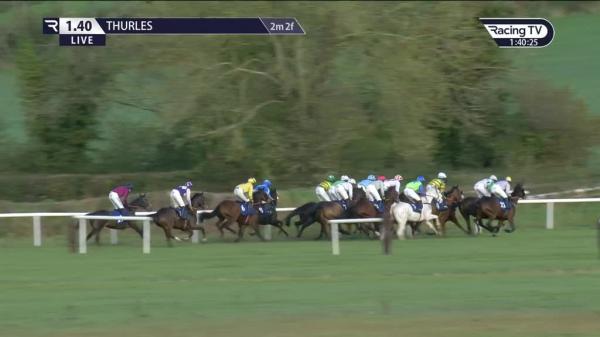 Tracked leaders, disputed from 2nd, tracked leader from 5th, disputed again briefly 5 out, ridden in 3rd entering straight, no extra before last where slight mistake