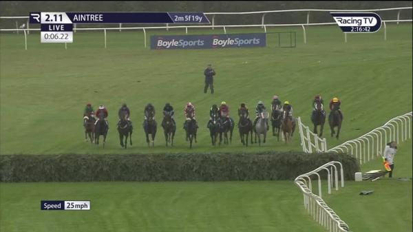 Held up towards rear, headway on inside 11th (foinavon), went 2nd after last, switched right after elbow, stayed on, pressing winner close home, just held