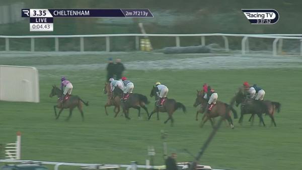 Mid-division, going well when making headway approaching final flight (usual 2 out, final hurdle omitted due to low sun), stayed on strongly to lead with a furlong left to run up the hill, soon clear, ran on well