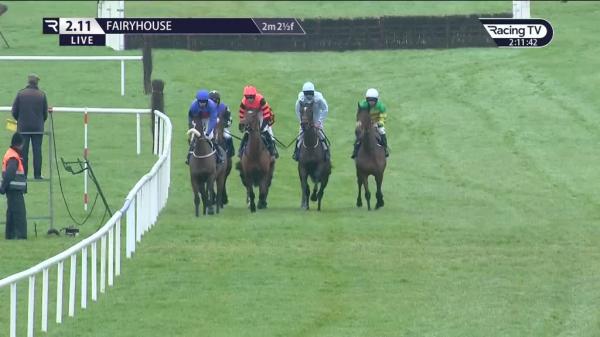 Tracked leaders in 4th, 5th 3 out, pushed along on outer 2 out, ridden in closer 4th before last, carried slightly left at last, stayed on well close home, never nearer
