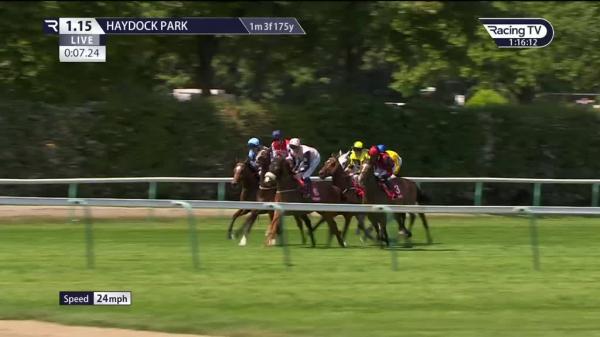 Steaied start, held up off the pace in last pair, steady headway on inside over 3f out, chased leaders over 2f out, switched left 1f out, stayed on well inside final furlong, not quite pace to challenge