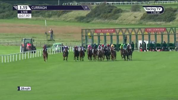 Dwelt, in rear, headway into mid-division on outer when bumped at halfway, headway into 5th 2f out, soon pushed along, ridden to dispute lead under 1f out, headed inside final furlong, no extra in 3rd close home