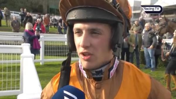 Led until after 1st, chased leader, pushed along and 3 lengths down jumping 2 out, closer between last two, led last, hung right and driven clear run-in