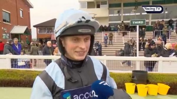 Chased winner who soon went clear, cajoled along throughout and went left at times, awkward and reminder 6th, hit 10th, continued tailed off