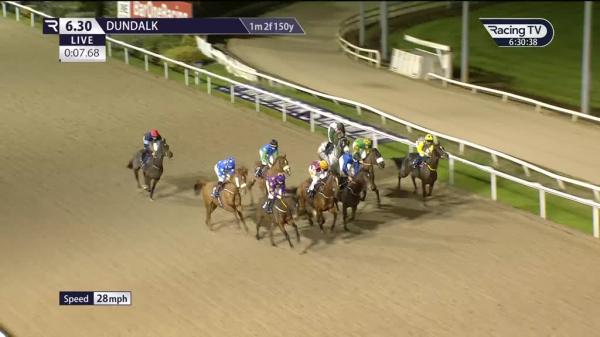 Bumped leaving stalls and stumbled, slowly into stride, in rear, pushed along on stands\' side 2f out, ridden in moderate 6th 1f out, went 2nd inside final furlong, kept on without threatening easy winner