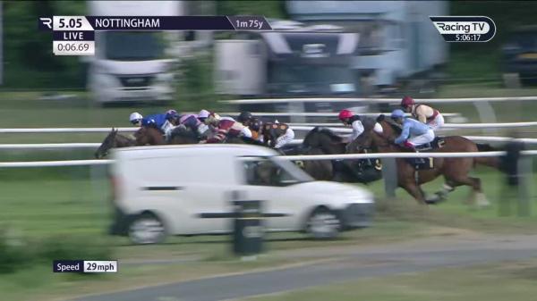 Dwelt, took keen hold, in rear, waiting for room 4f out, good headway on outer from 3f out, edged left over 1f out, soon ridden to lead, just prevailed