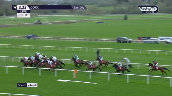 Mid-division, 6th halfway, 3rd 4 out, 4th 3 out, soon pushed along on far side, 3rd 2 out, no impression after 2 out, 1.5 lengths 3rd and staying on when mistake and unseated rider last